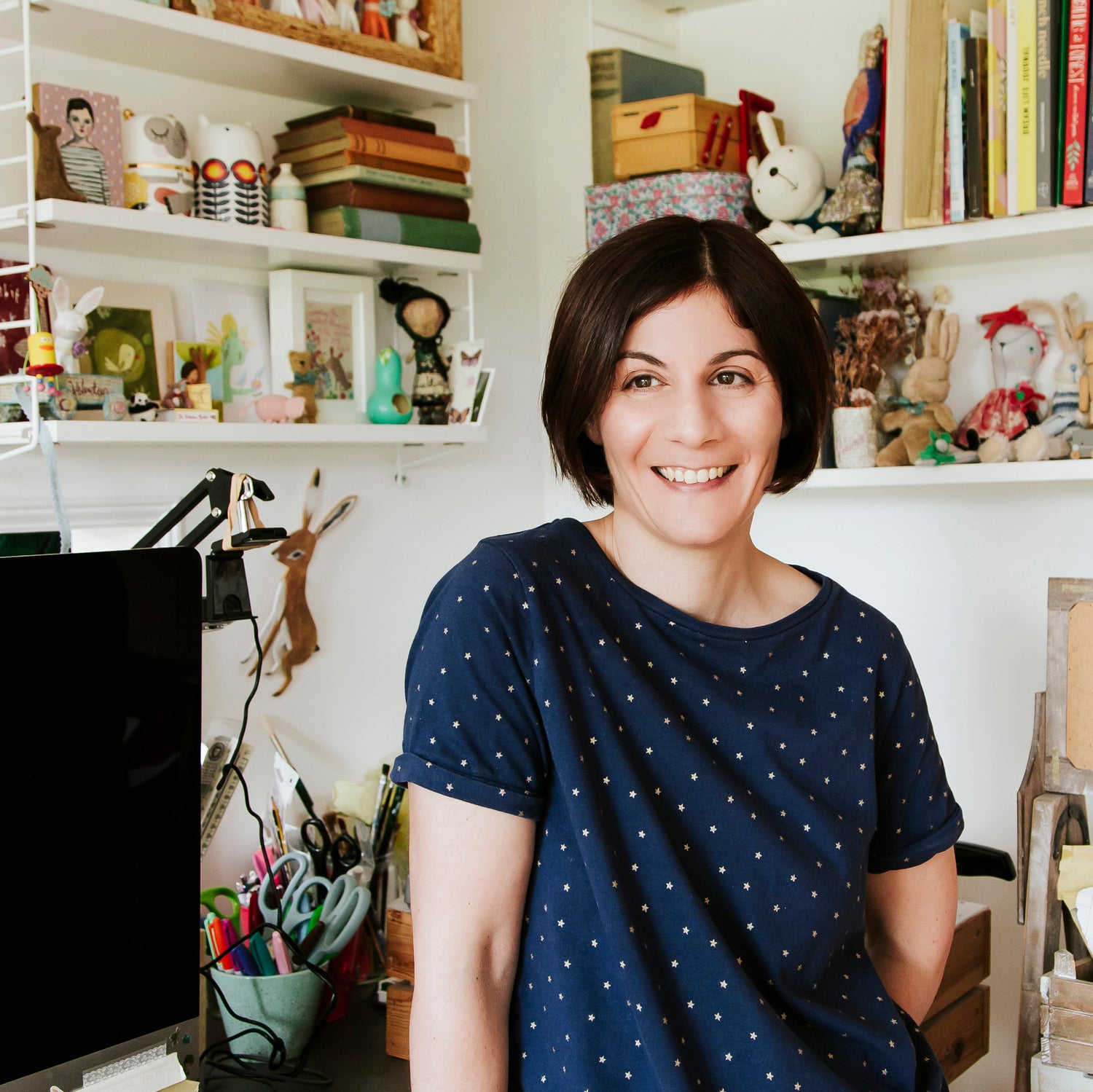After 24 years in the design industry - with my work stocked in beautiful places like Liberty London, Fenwick, JoJo Maman Bébé and John Lewis - I now pour my energy into creating joyful punch needle art, teaching others this wonderful craft, and running my business from the rolling hills of the Chilterns, with my family and two house rabbits by my side.