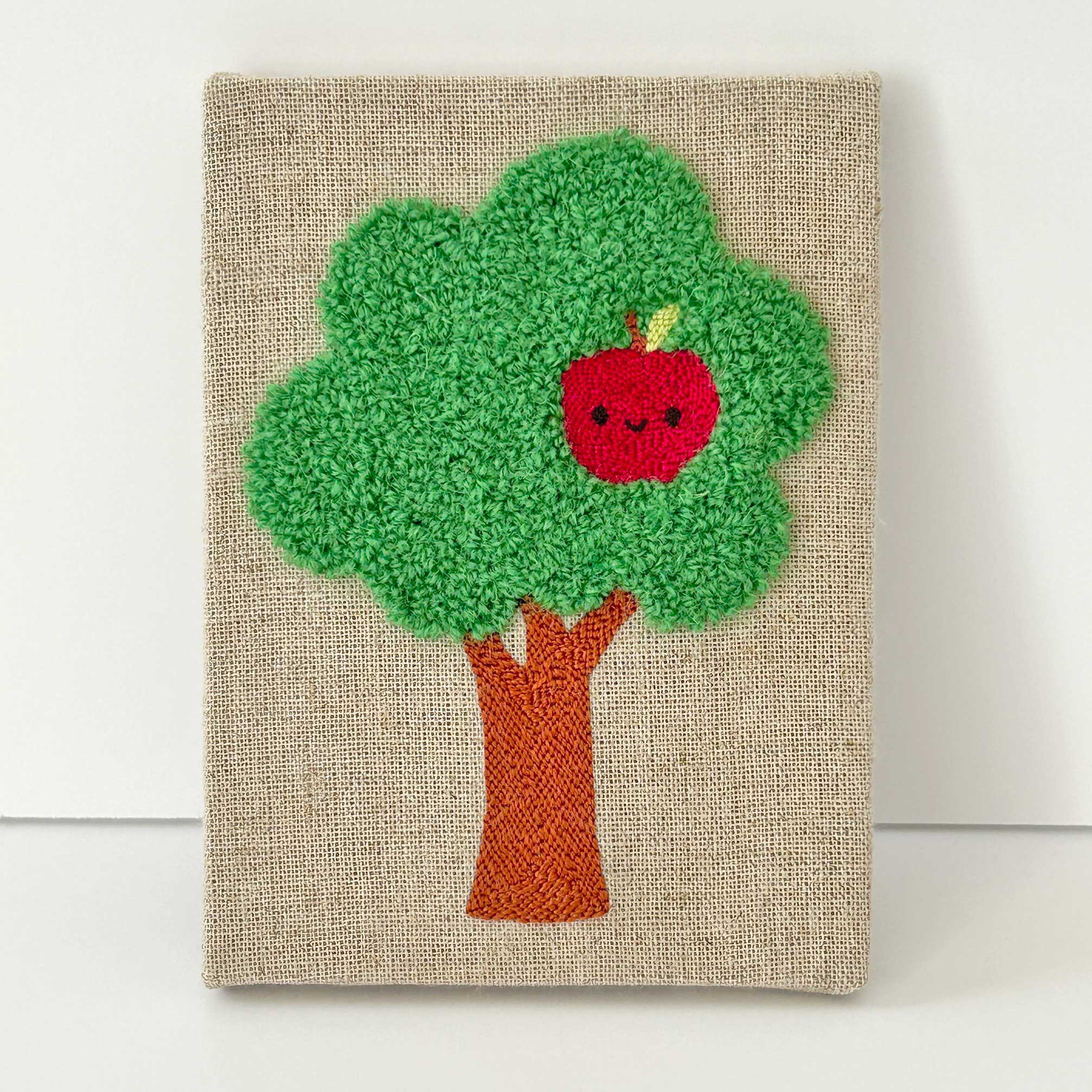 A small selection of my punch needle artwork — from playful, joyful pieces to more detailed textile illustrations.
