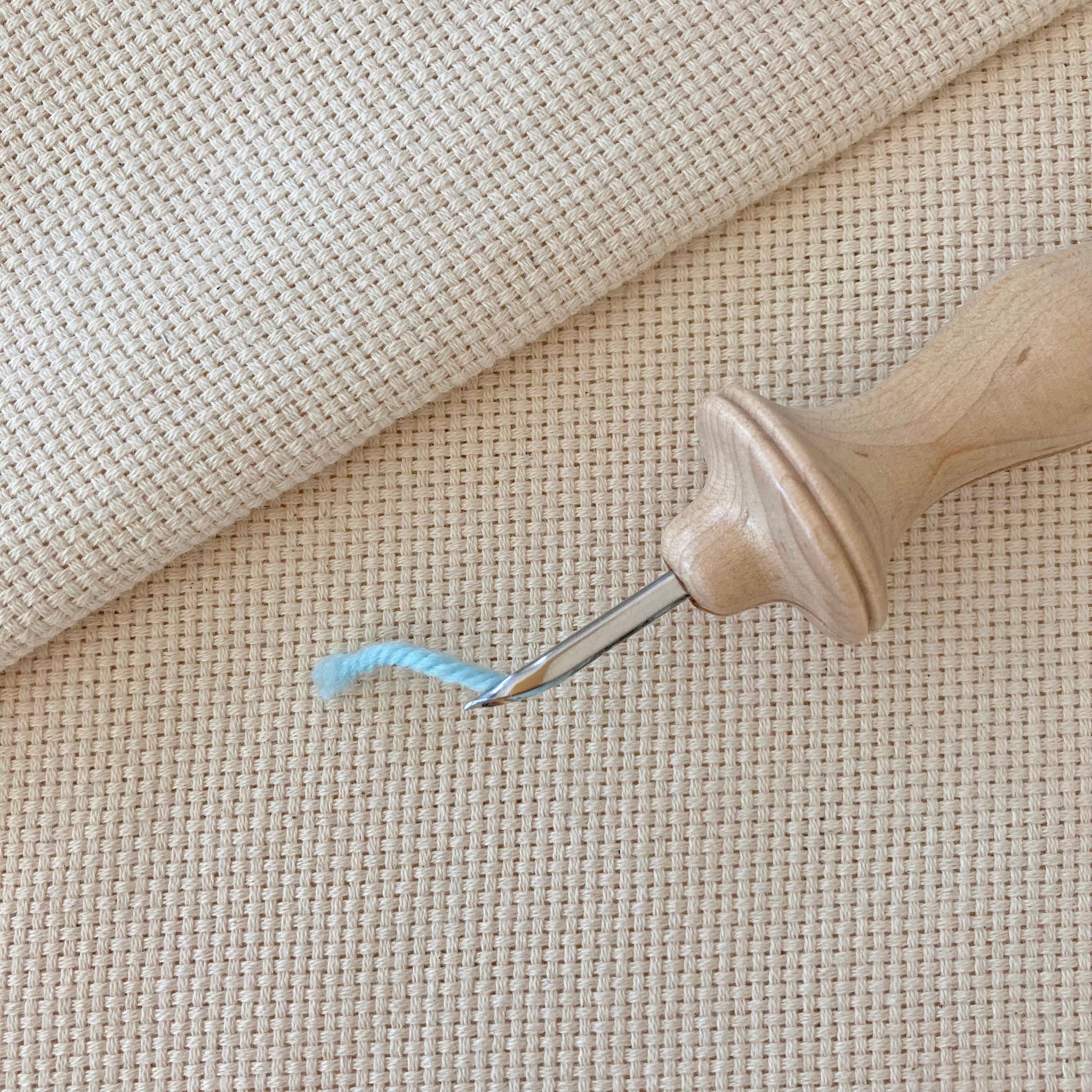 If you take this route, I’d still recommend beginning with monk’s cloth and wool using a larger punch needle, as this combination is the most forgiving while you learn.