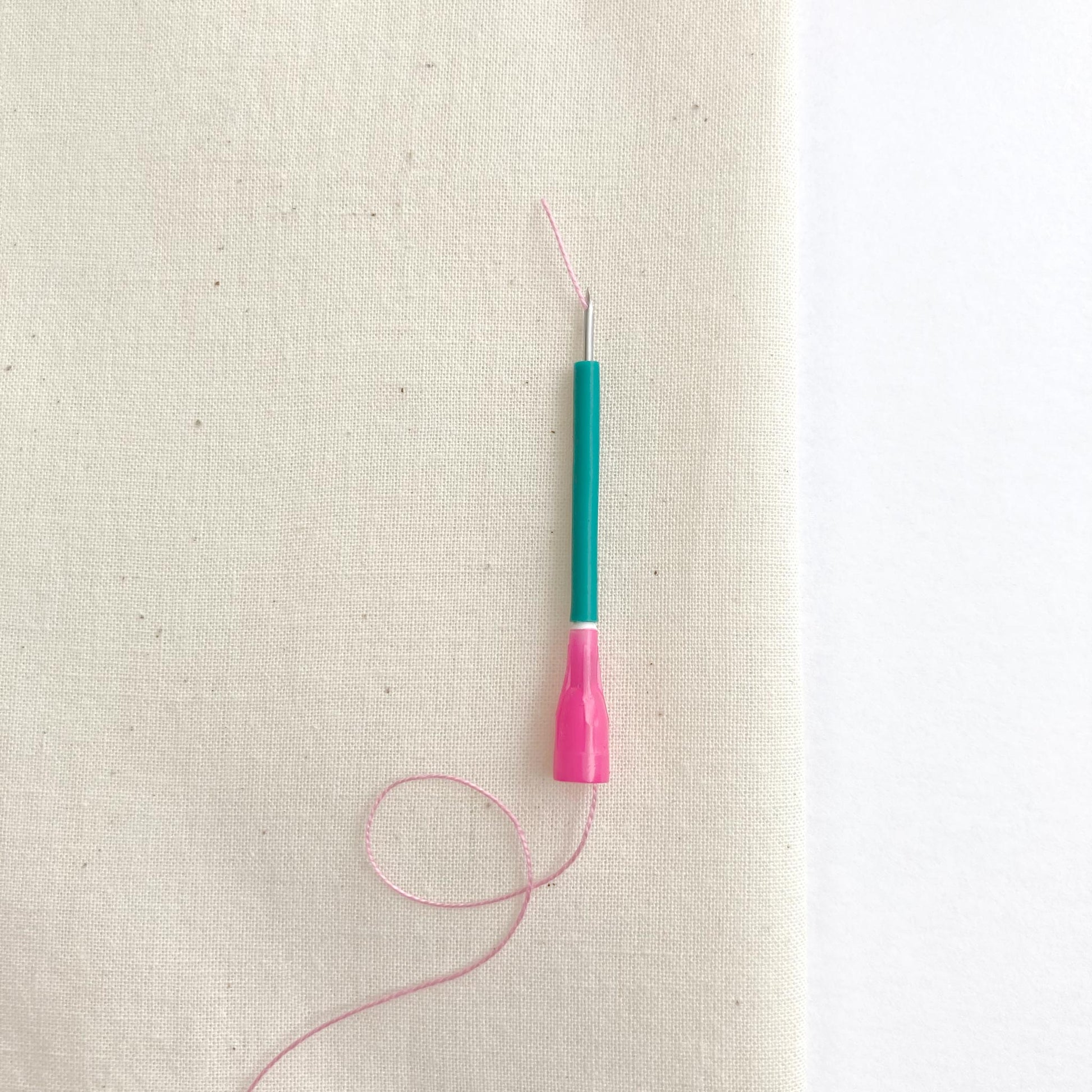 It works well with various punch needles, including the Miniature Magic Punch Needle, the smallest needles in the Clover punch needle set, or any mini needle designed to hold 1–2 strands of embroidery floss, size 12 pearl/perle cotton, or size 8 pearl/perle cotton.