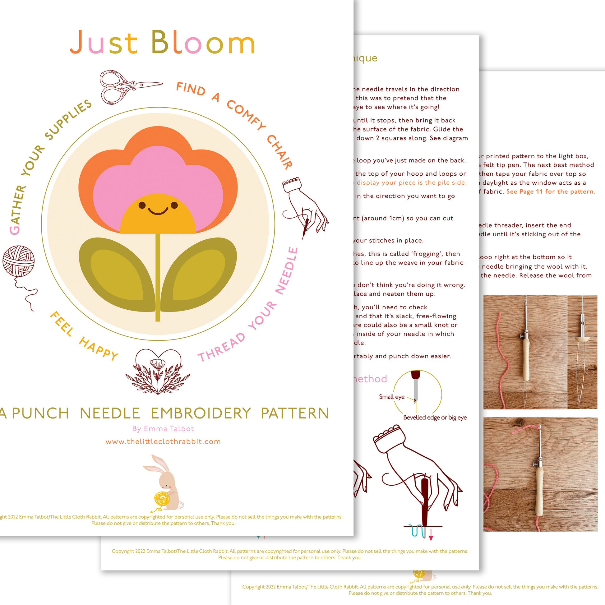 Downloadable Punch Needle Pattern for beginners to all levels 'Just Bloom'